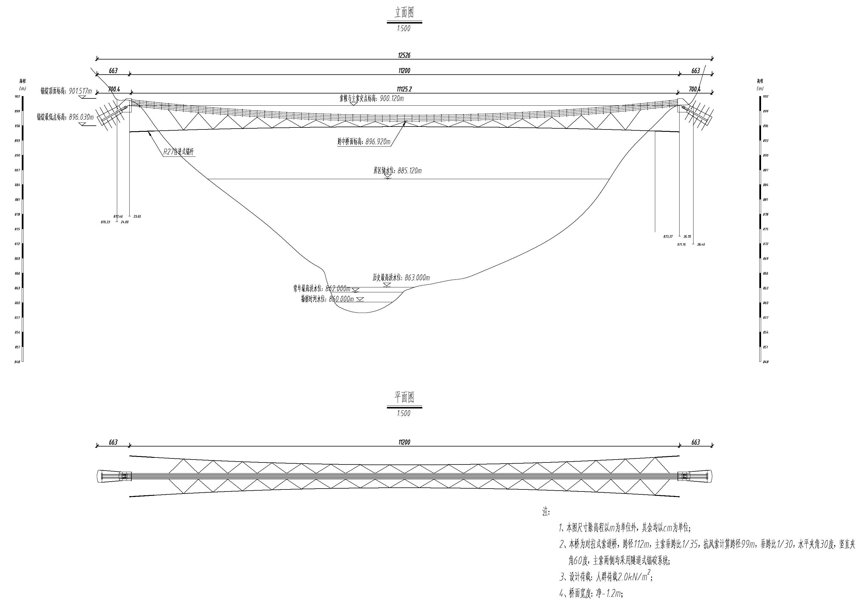 120m跨径人行吊桥(悬索桥)cad施工图
