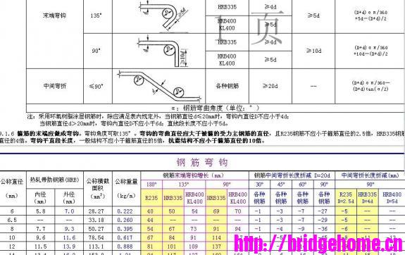 钢筋弯勾及折减计算表
