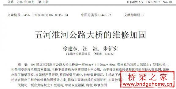五河淮河公路大桥的维修加固 - 【桥梁加固及检测】 - 道桥网-桥梁之家—打造桥梁行业最大、最专业的桥梁资料和技术交流基地!道桥之家网! - daoqiao.net